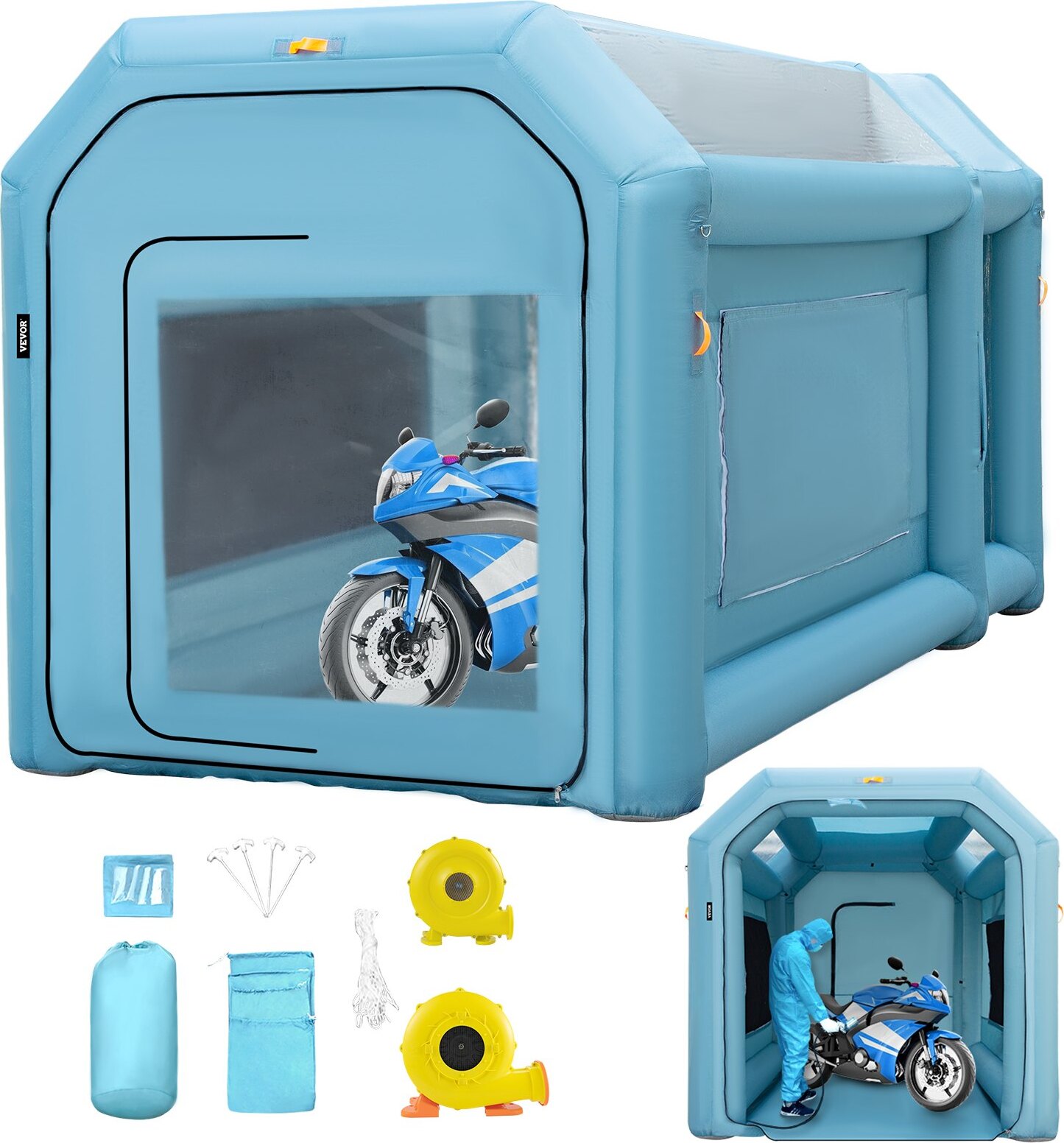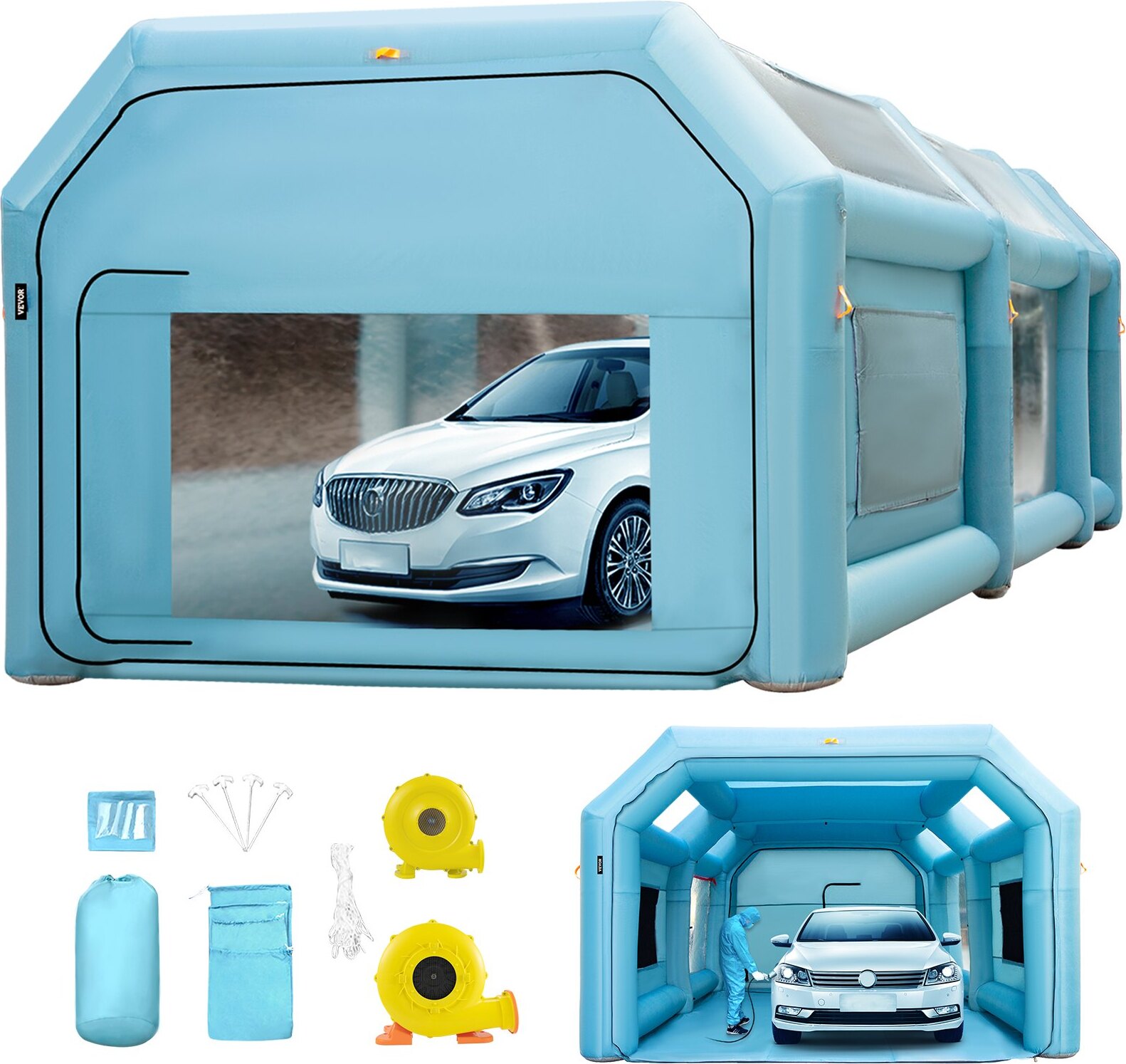 Cabine de peinture gonflable VEVOR, 8,5 x 4,8 x 3,3 m Cabine de peinture gonflable, avec ventilateurs puissants de 950+ 750 W & système de filtration d'air, cabine de peinture automobile pour petits camions, motos