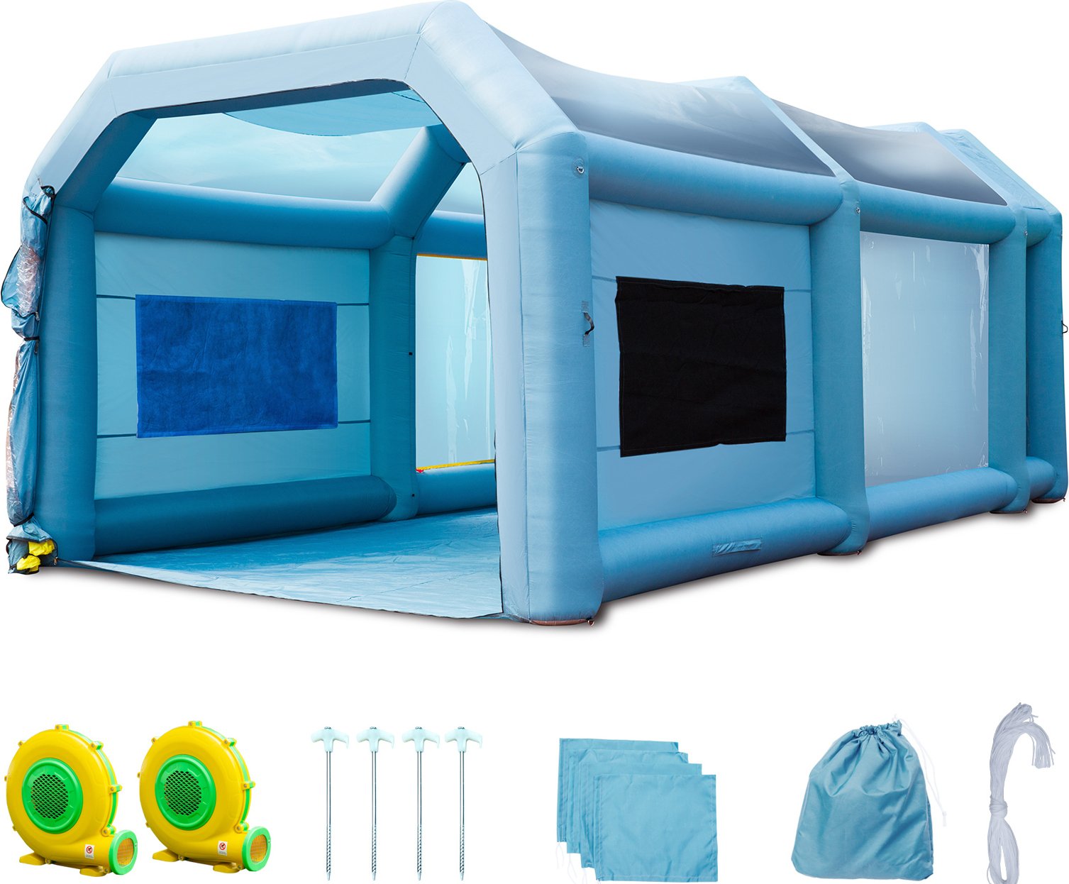 SucceBuy Cabine de peinture gonflable portable 26x15x10ft Cabine de peinture automobile avec système de filtration d'air et 2 ventilateurs Poste de travail de peinture automobile