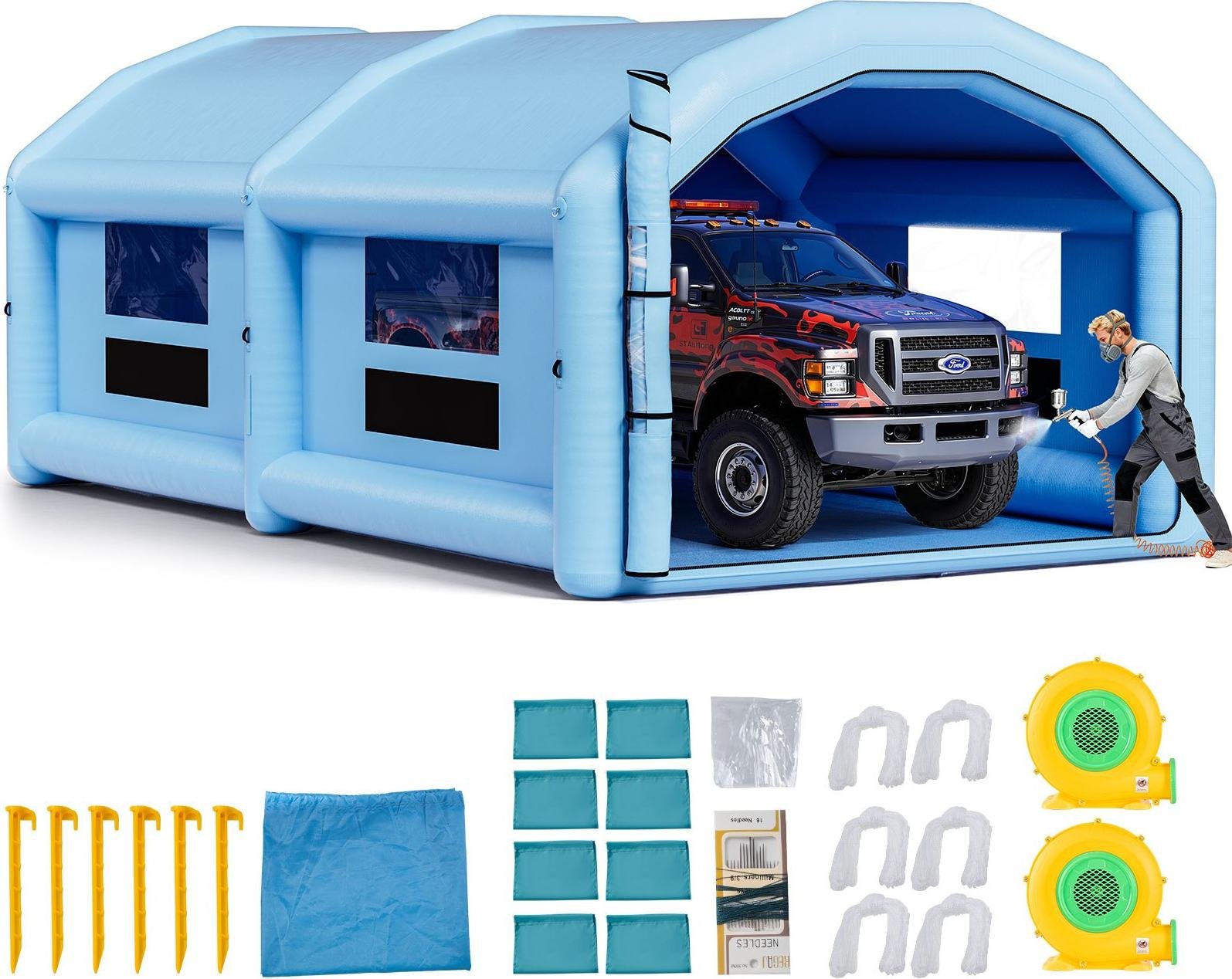 VEVOR Cabine de peinture gonflable, 10 x 6,4 x 4,5 m, Cabine de peinture gonflable, avec ventilateurs puissants de 1100 W + 750 W & système de filtration d'air, Cabine de peinture automobile portable pour poids lourds