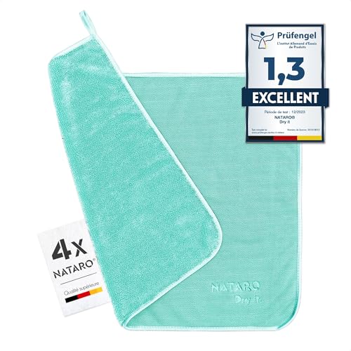 NATARO® Lot de 4 Fast Dry it Chiffon sec de qualité supérieure pour cabine de douche, voiture, maison, camping - L'original - Chiffon en microfibre extra absorbant, non pelucheux, anti-rayures - 40 x