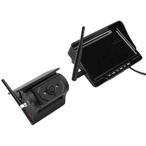 Generic Caméra de Recul sans Fil, 1080P HD Magnétique Solaire sans Câblage, Caméra de Recul pour Remorque de Camion RV avec écran 7 Pouces, pour Pick-up Petites Voitures RV