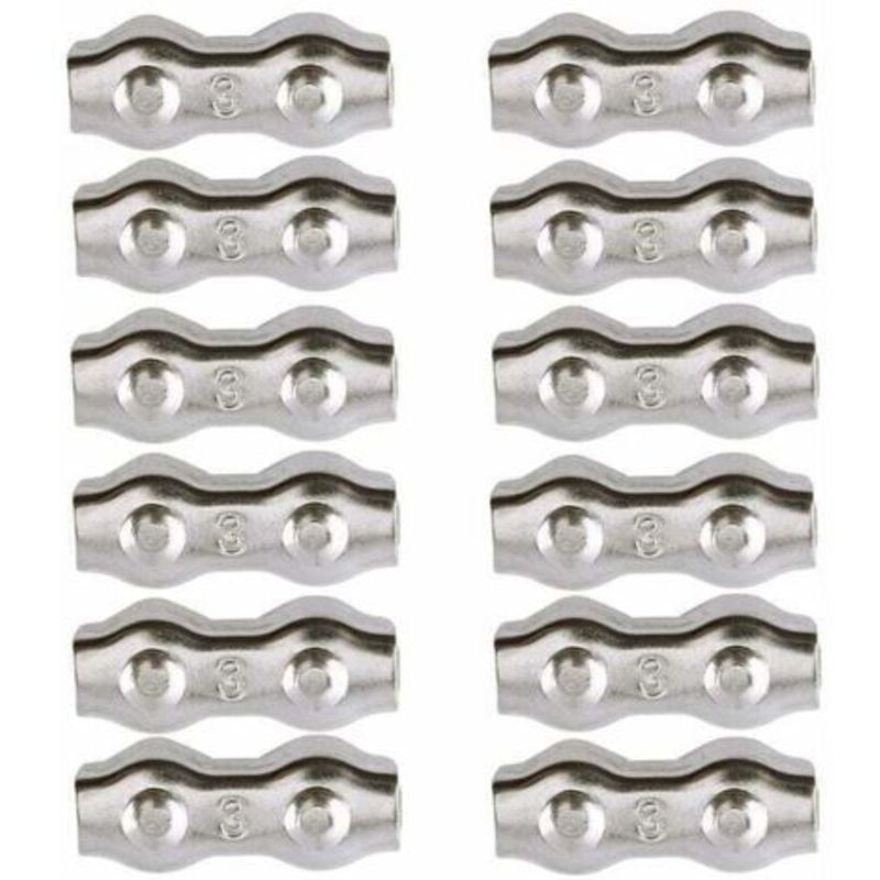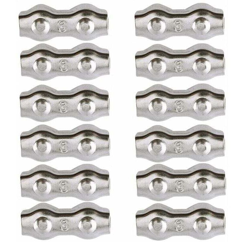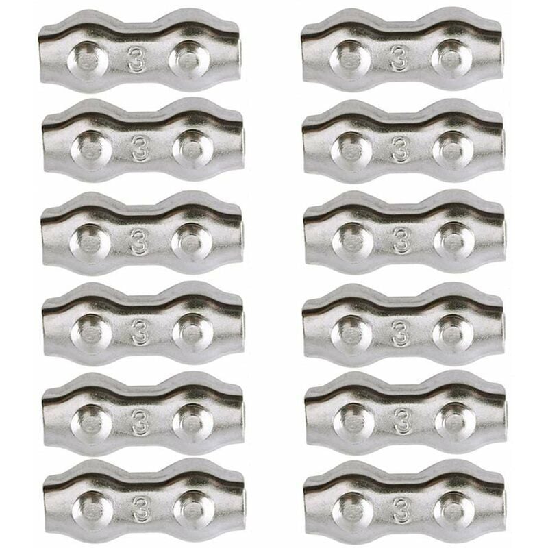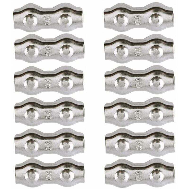 Serre Cable Acier 3mm 12 Pièces Serre Câbles Duplex Pince de Câble Acier inoxydable 304 D'agrafe de Câble,Câble Poignées pour 2mm Câble Métalliques