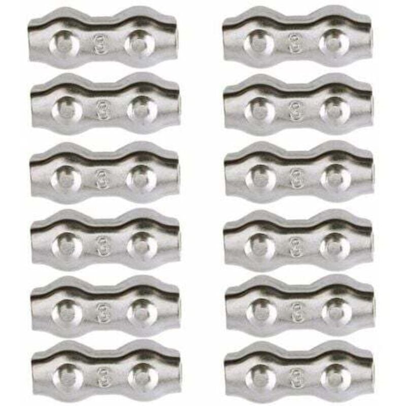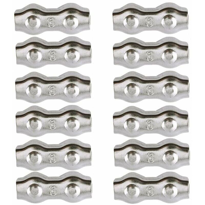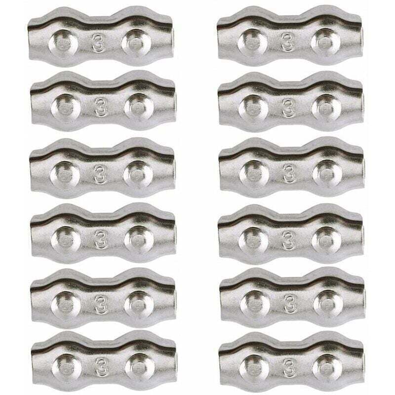 Jalleria - Serre-câble , Serre Cable Acier 3mm 12 Pièces Serre Câbles Duplex Pince de Câble Acier inoxydable 304 D'agrafe de Câble,Câble Poignées