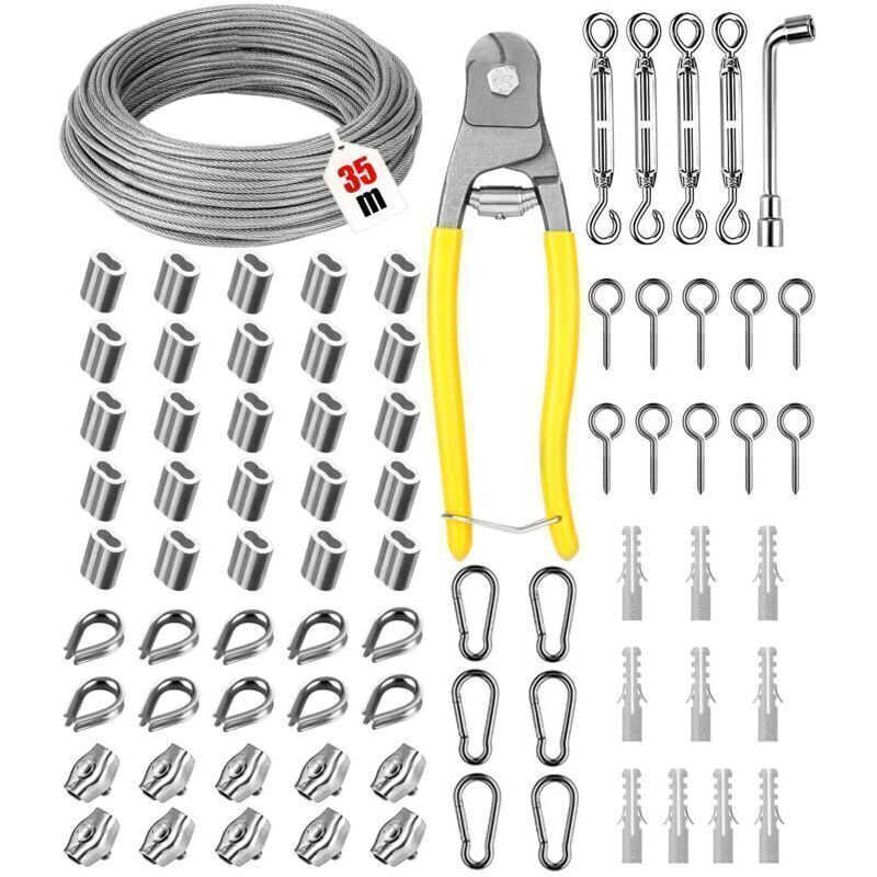 Vtizikl 35M Câbles en Acier Inoxydable à Suspendre Kit,304 Cable Inox 3mm avec Tendeur Cable, Serre Cable Acier,Câble en Acier Gainé pour Treillis