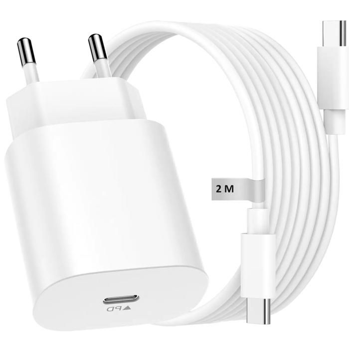 Chargeur Rapide iPhone 17 16 Pro, Chargeur iPhone USB C 20W avec 2M USB C Câble pour Apple iPhone 17 Pro Max/17 Air/16 Plus/15/iPad/Mini/Samsung, Type C 2m Cable Adaptateur Secteur Mural Alimentation
