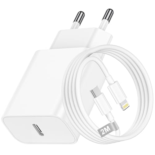 Chargeur Rapide iPhone【Apple Certifié】 20W USB C Adaptateur Secteur et 2M Lightning Apple Original Cable pour iPhone 14/14 Plus/14 Pro/14 Pro Max/13/12/11/SE/X/XS/XR