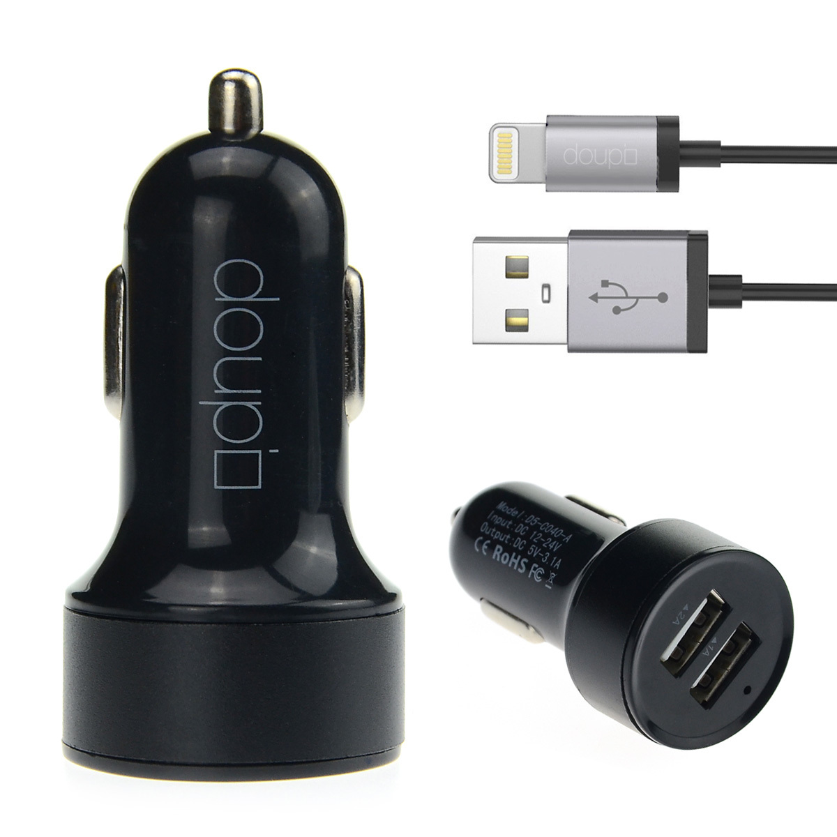 USB Double Auto Charge Set Câble Adaptateur IPHONE X 8 7 6S Plus 5 5S Se IPAD