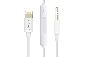 Câble Auxiliaire iPhone iPad iPod vers Jack 3.5mm avec Télécommande LinQ Blanc