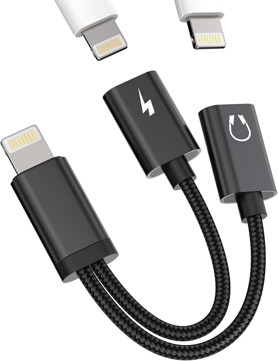 Adaptateur Lightning Vers 3.5mm Ecouteur Jack(2 en 1)pour iPhone 14 13 12 Chargeur Adapter Casque AUX Audio Cable Splitter Pour Apple Prise Connecteur Pour ipad Accessoire Téléphone Voiture Auxiliaire