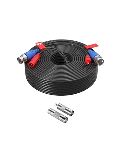 Akinguar 30m/100FT Câble de Video DC Power Tout-en-Un Câble BNC Vidéo pour Caméra de Surveillance et CCTV Sécurité Système Vidéos de 960H à 4K Résolution, Connecteur BNC RCA Inclus