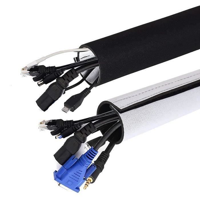 Range Câble 305 cm de Haute Qualité, Meilleure Gaine de Management de Câbles pour Télé, Bureau, Ordinateur, Maison - Cache Câble Réglable Réversible Noir et Blanc en Néoprène Organiser Vos Fils
