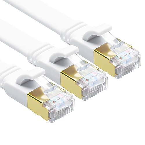 Yauhody Cat 8 Câble Ethernet 1m 3 Pièces, RJ45 Câble Réseau Plat 40Gbps 2000MHz S/FTP Super Débit Double Blindage Cable Internet Compatible avec PS5 TV PC Router Modem, Plus rapide que Cat7 (Blanc)