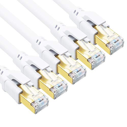 Yauhody Cat 8 Câble Ethernet 5m 5 Pièces, RJ45 Câble Réseau 40Gbps 2000MHz S/FTP Super Débit Double Blindage Cable Internet Compatible avec PS5 TV Box PC Router Modem, Plus rapide que Cat7 (Blanc)