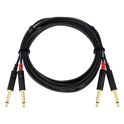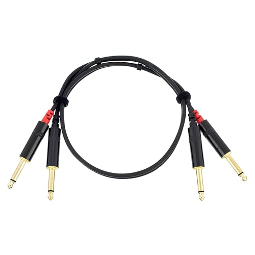 Prise Mâle Mono 6,35 Mm vers Double Câble Jack Femelle 6,35 Mm Répartiteur en Y, Câble Adaptateur Stéréo plaqué Or 1/4 TRS Mâle vers Double Câble TS Femelle 1/4 Longueur 20 Cm