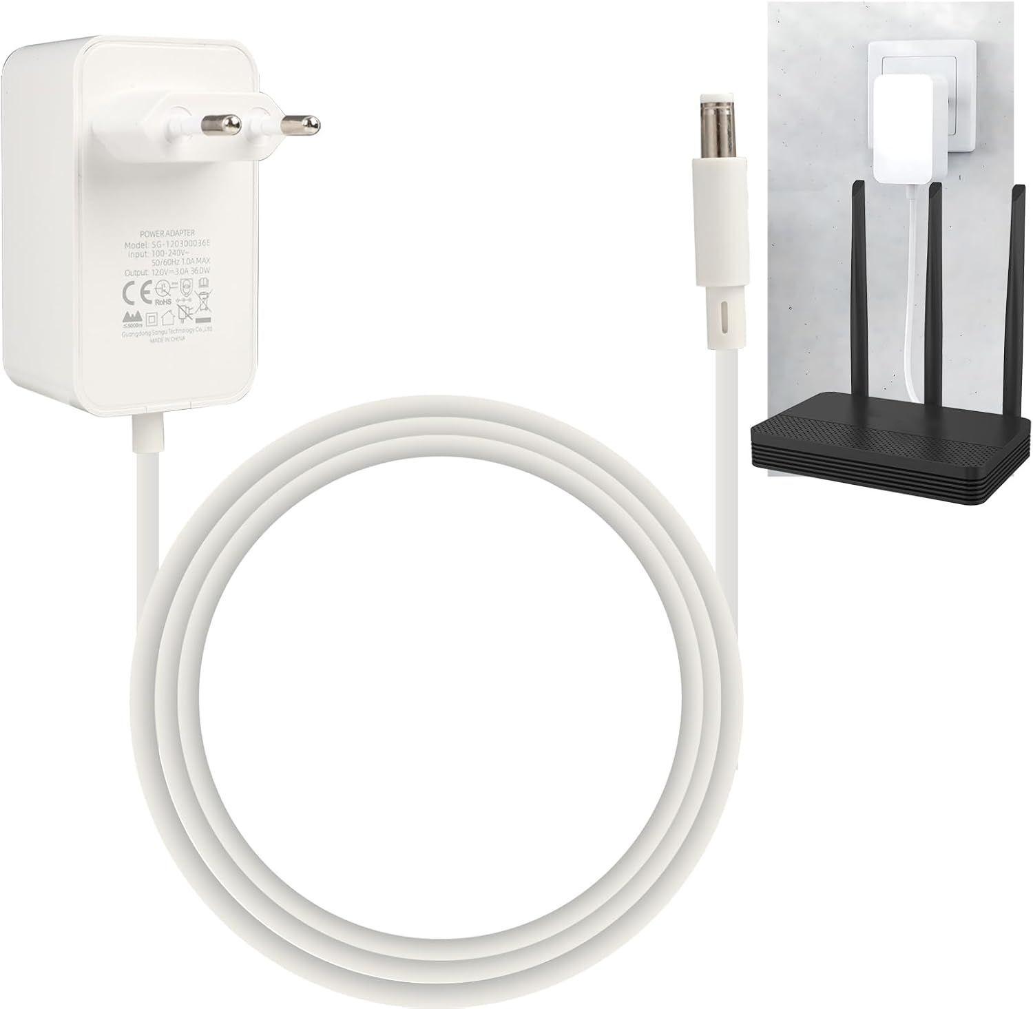 12V/3.5A Power Supply-3m Long Cable-Compatible with AVM Fritz!Box Router-Wi-Fi Repeater (AX,DSL,Cable,LTE) Telekom Speedport Smart-300 Power Extension