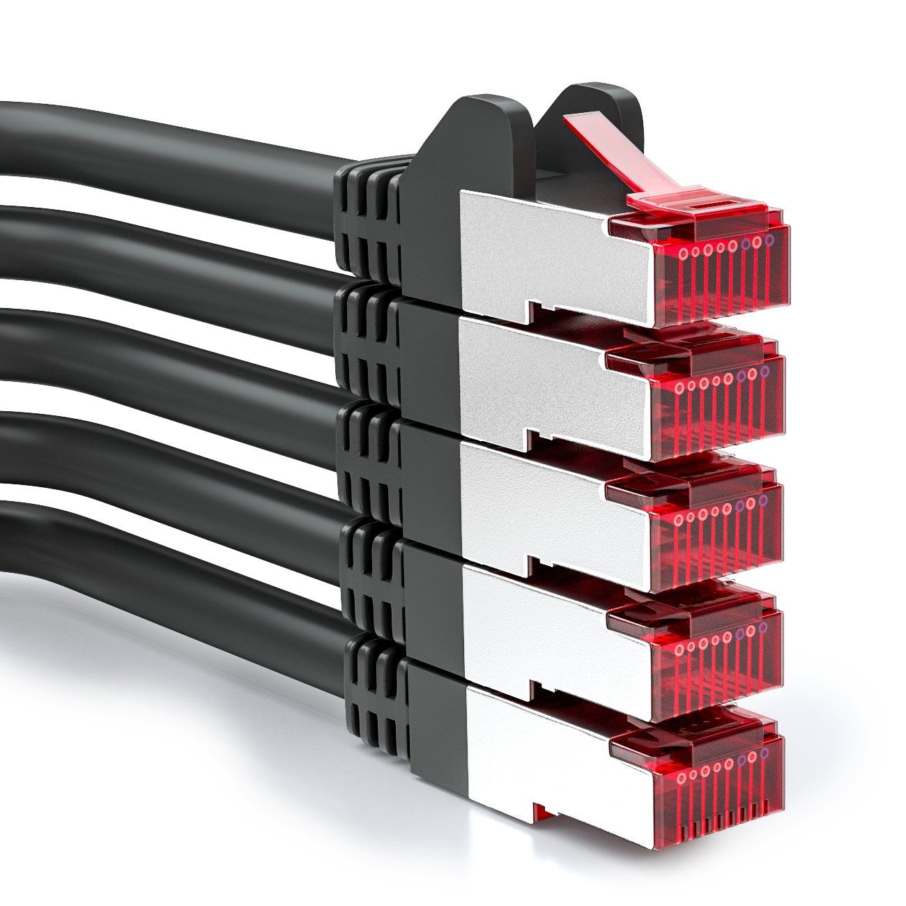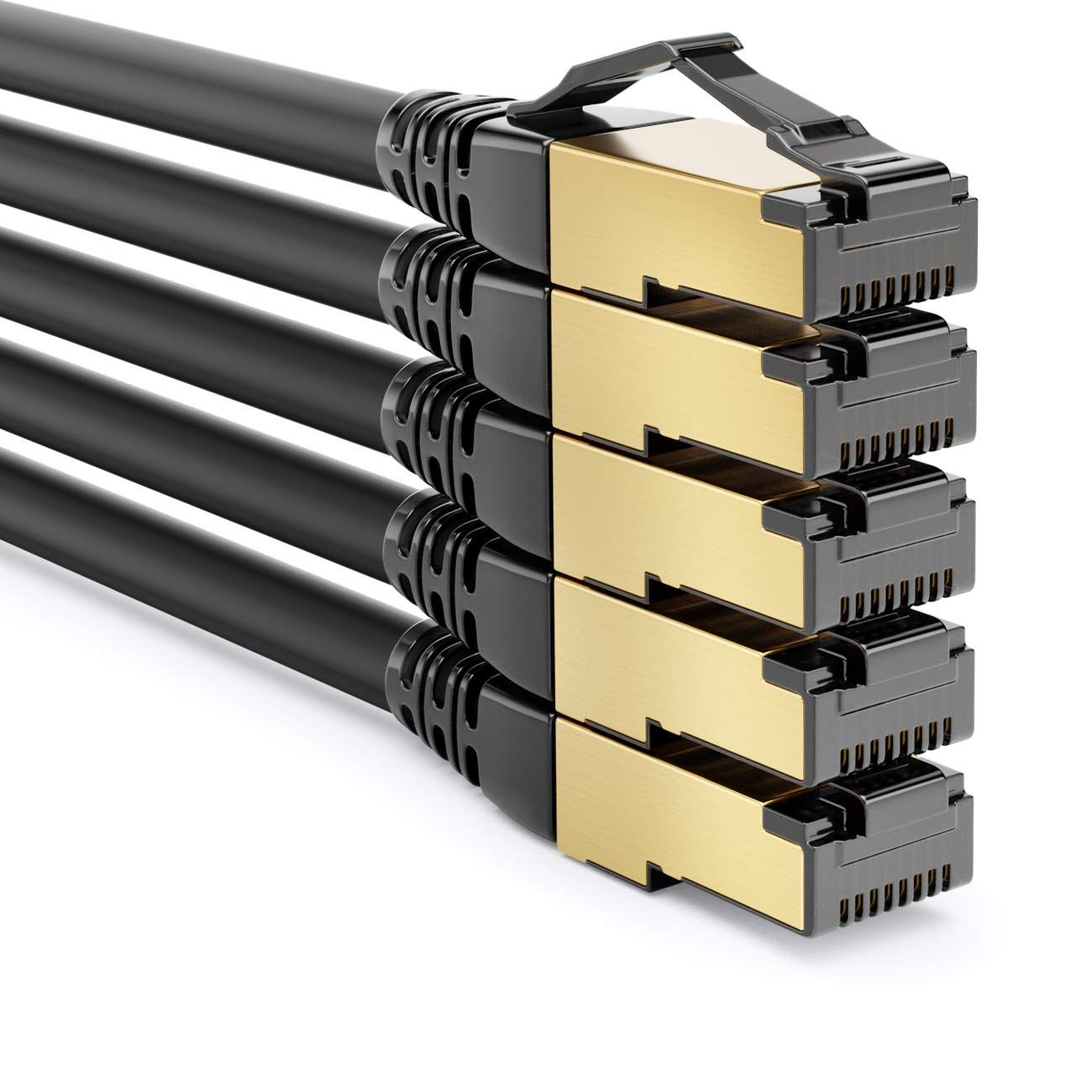 5 x 1 m CAT8.1 Patch Cable Network Cable S/FTP PIMF 2000 MHz 40 Gbit RJ45 LAN DSL Cable CAT.8 Ethernet Cable RJ45 Plug ¿ Black