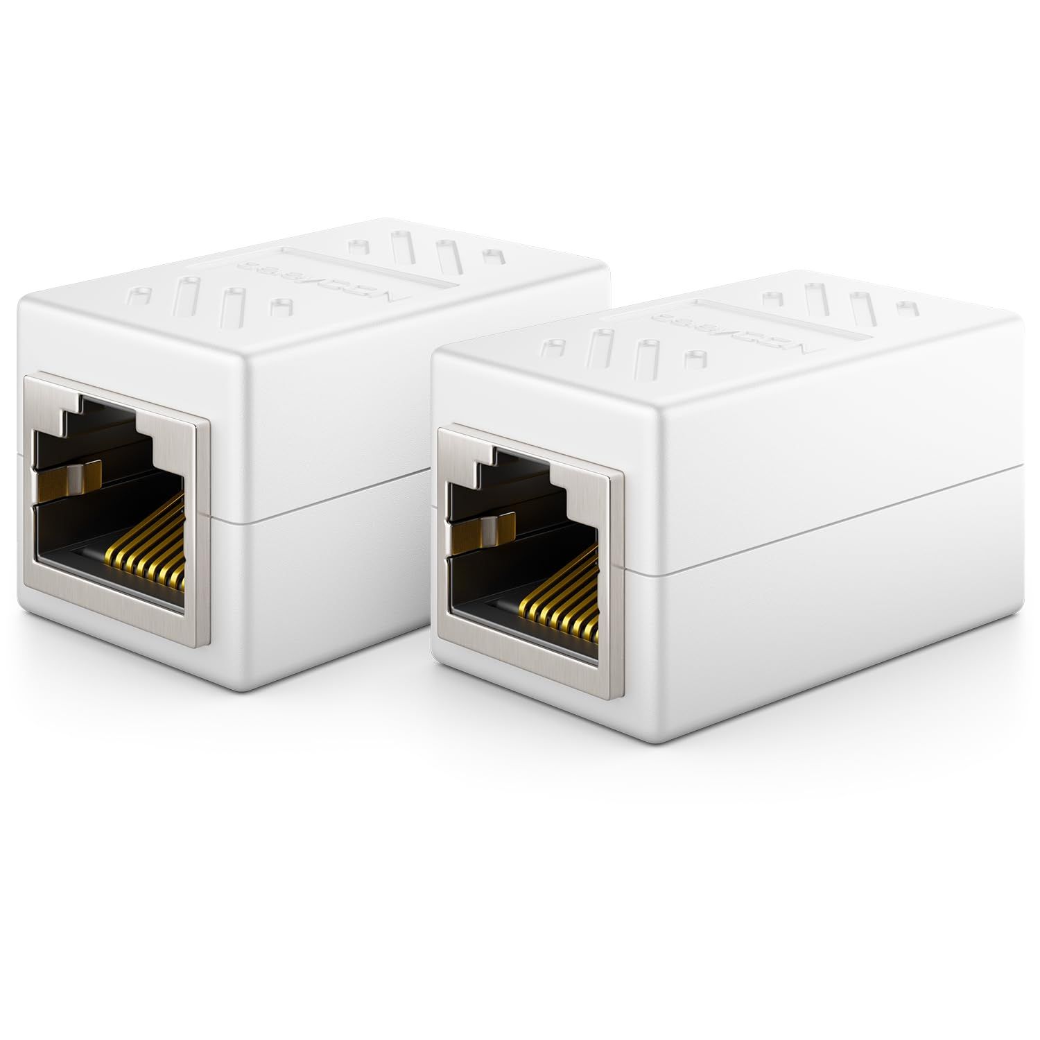 2 Pieces RJ45 Coupler (1000 Mbit) Gigabit LAN Cable Extension Network Cable Ethernet Adapter Connector Compatible with Cat8,Cat7,Cat6,Cat5 Patch Cable DSL POE 2X RJ45 Female-White
