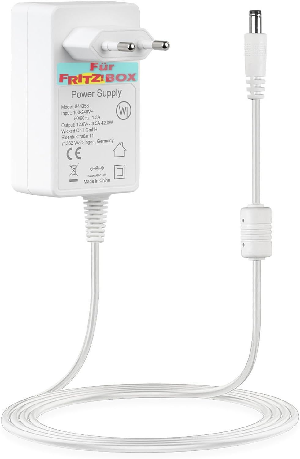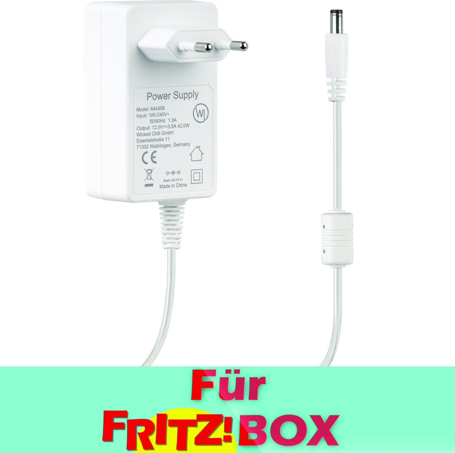 Wicked Chili Bloc d'alimentation 12 V/3,5 A - Câble de 3 m de long - Compatible avec routeur AVM Fritz!Box - Répéteur Wi-Fi Fritz (AX, DSL, Cable, LTE) Telekom Speedport Smart, rallonge d'alimentation