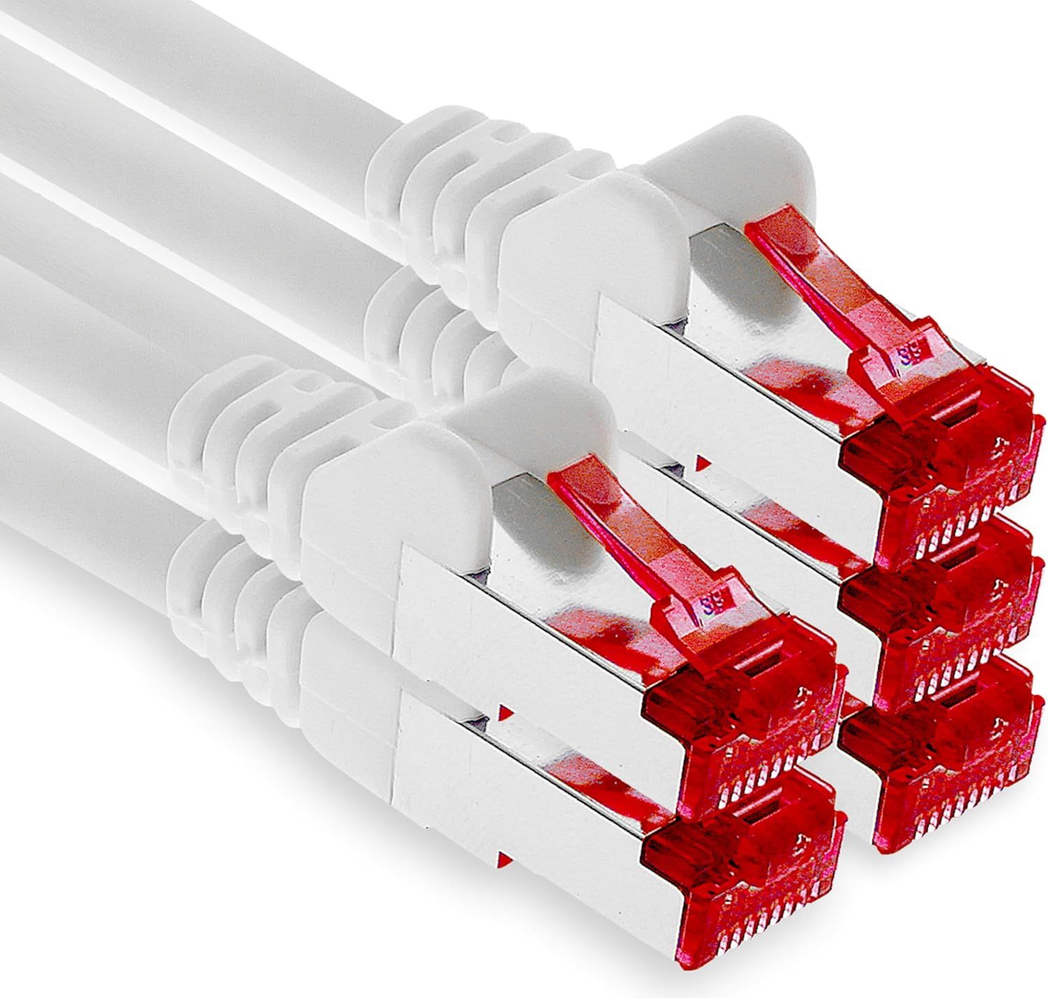5x 1m CAT6 S/FTP Shielded PIMF Network Cable CAT.6 RJ45 Ethernet Cable Router LAN DSL Switch Modem Patch Panel-White-5 Pieces