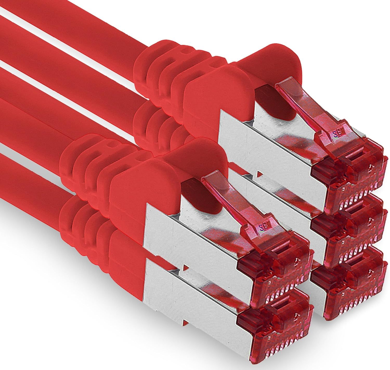 5x 1m CAT6 S/FTP Shielded PIMF Network Cable CAT.6 RJ45 Ethernet Cable Router LAN DSL Switch Modem Patch Panel-Red-5 Pieces