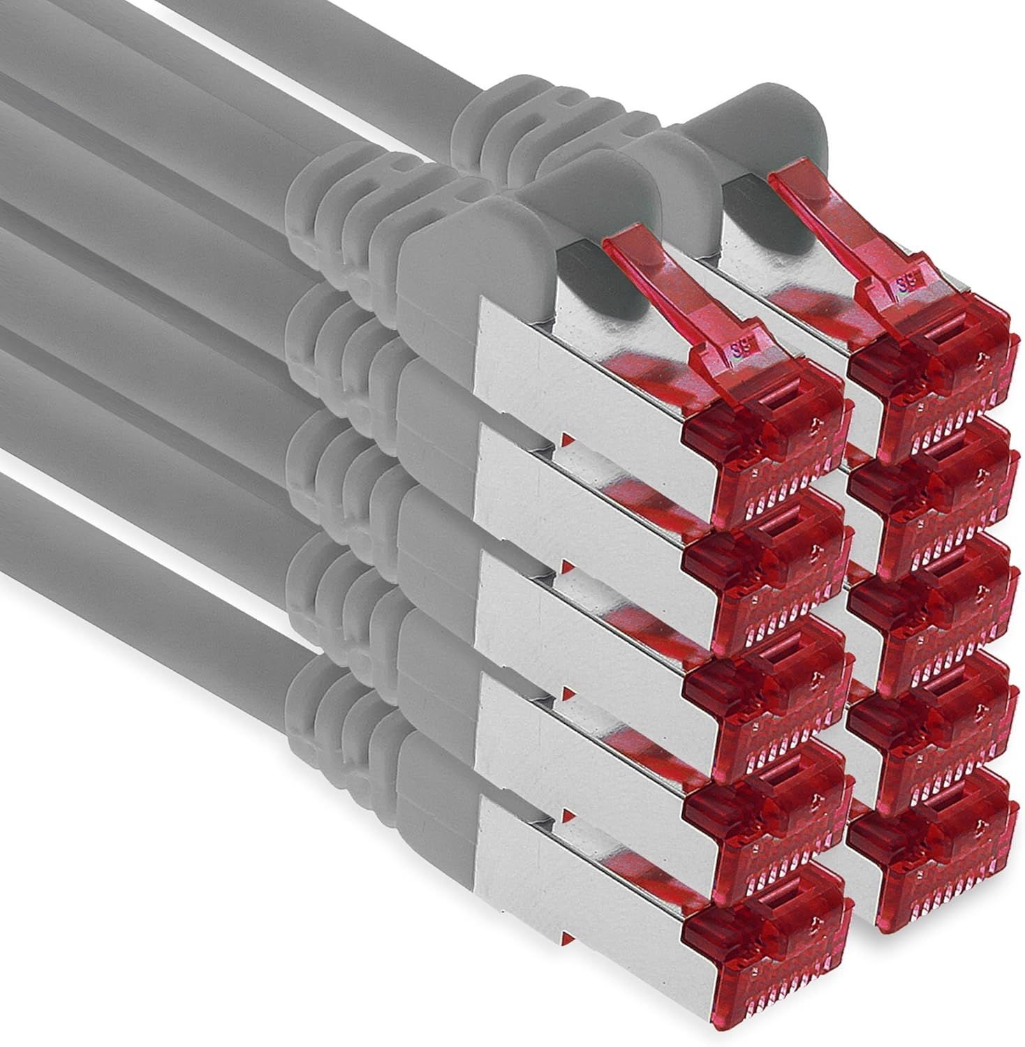 10x 1m CAT6 S/FTP PIMF Shielded Network Cable CAT.6 RJ45 Ethernet Cable Router LAN DSL Switch Modem Patch Panel - Grey - 10 Pieces