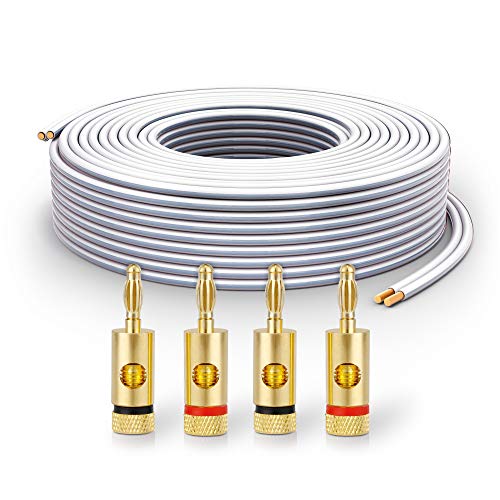 PureLink Câble d'enceinte SP061-025 2x2,5 mm² (99,9% de cuivre OFC, Fil toronné de 0,20 mm) Câble d'enceinte Hi-FI, 25 m, Blanc, Jeu Comprenant 8 fiches Bananes