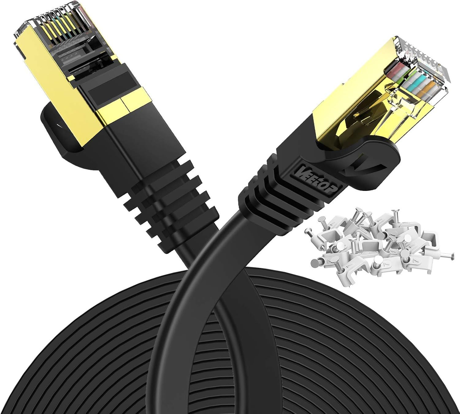 Veetop Cable Ethernet 20m, Cable Rj45 Cat 7 Plat haute vitesse avec connecteur RJ45 plaqué or, Cable Ethernet blindé Cable internet Haut Débit 10 Gb/s - 750 MHz