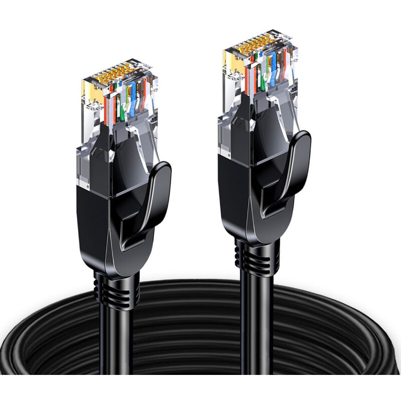 Elfcam - 40m Câble Réseau Ethernet RJ45 Cat 6 Rond Noir, 1Gbps, 26AWG, Connecteurs RJ45 Haute Qualité, lan wan, Ultra Fiable, Idéal pc, Console,