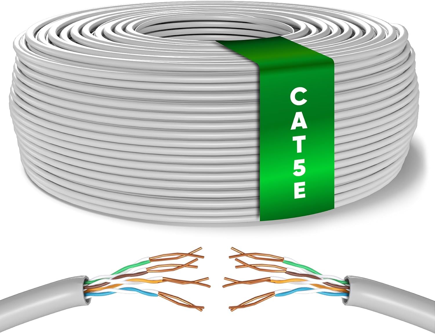 Vrac Câble Ethernet 50M, Bulk Reseau Lan Cat 5E Haut Debit Pour Internet Rapide 1 Gbps 100 Mhz, Câble Ethernet Awg24, Cat5E En Vrac Utp Cca (50 Mètres, Gris)[CAB4192517]