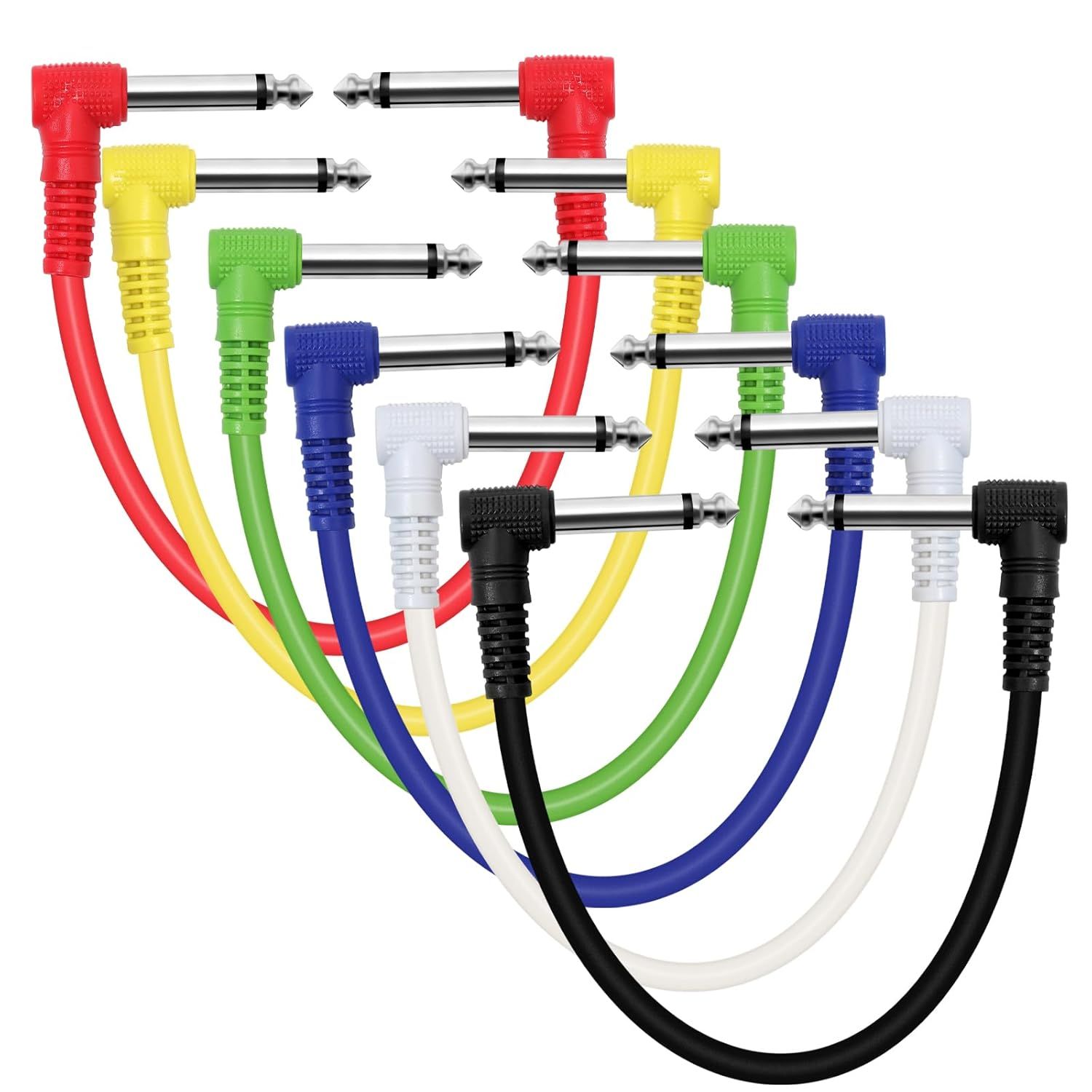 ChenQuanSarl-6 Pièces Cable Jack Guitare, Cable Jack 6.35 Mm, Cable Guitare Electrique 30 Cm Classique Cordons Patch Colorés Pour Pedalboard D'Effet Guitare/Basse