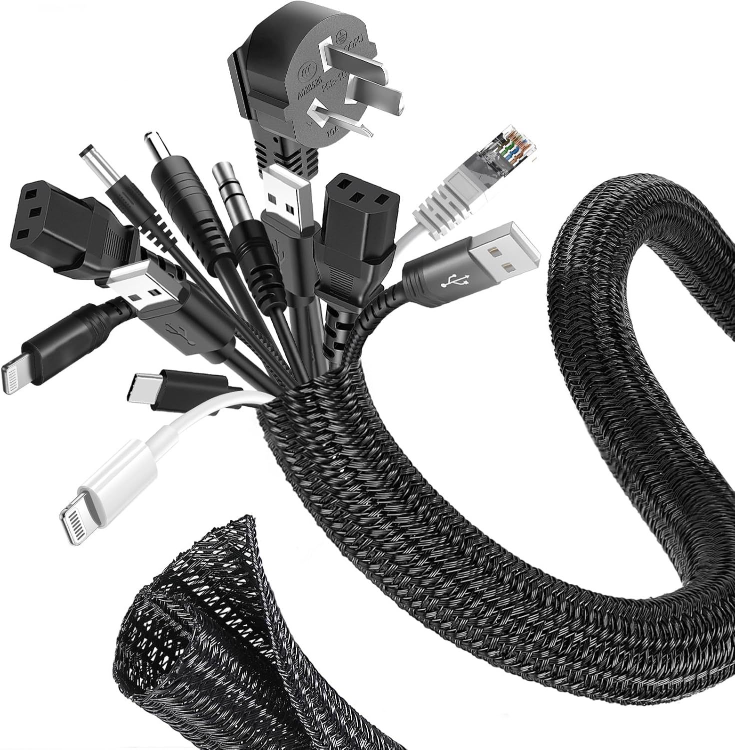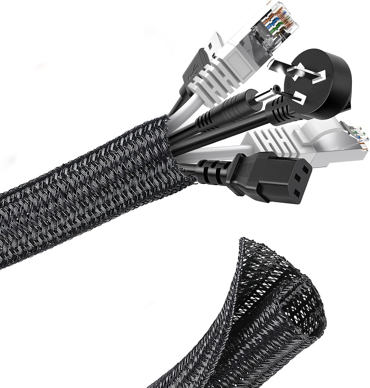 3M Manchon De Cache Câble, 13-22Mm Réglable Gaine Câble Tressée, Extensible Gaine Range Cable Informatique, Protection Du Cache Câbles Pour Automobiles/Tv/Pc/Usb/Audio/Vidéo[HDM924359]