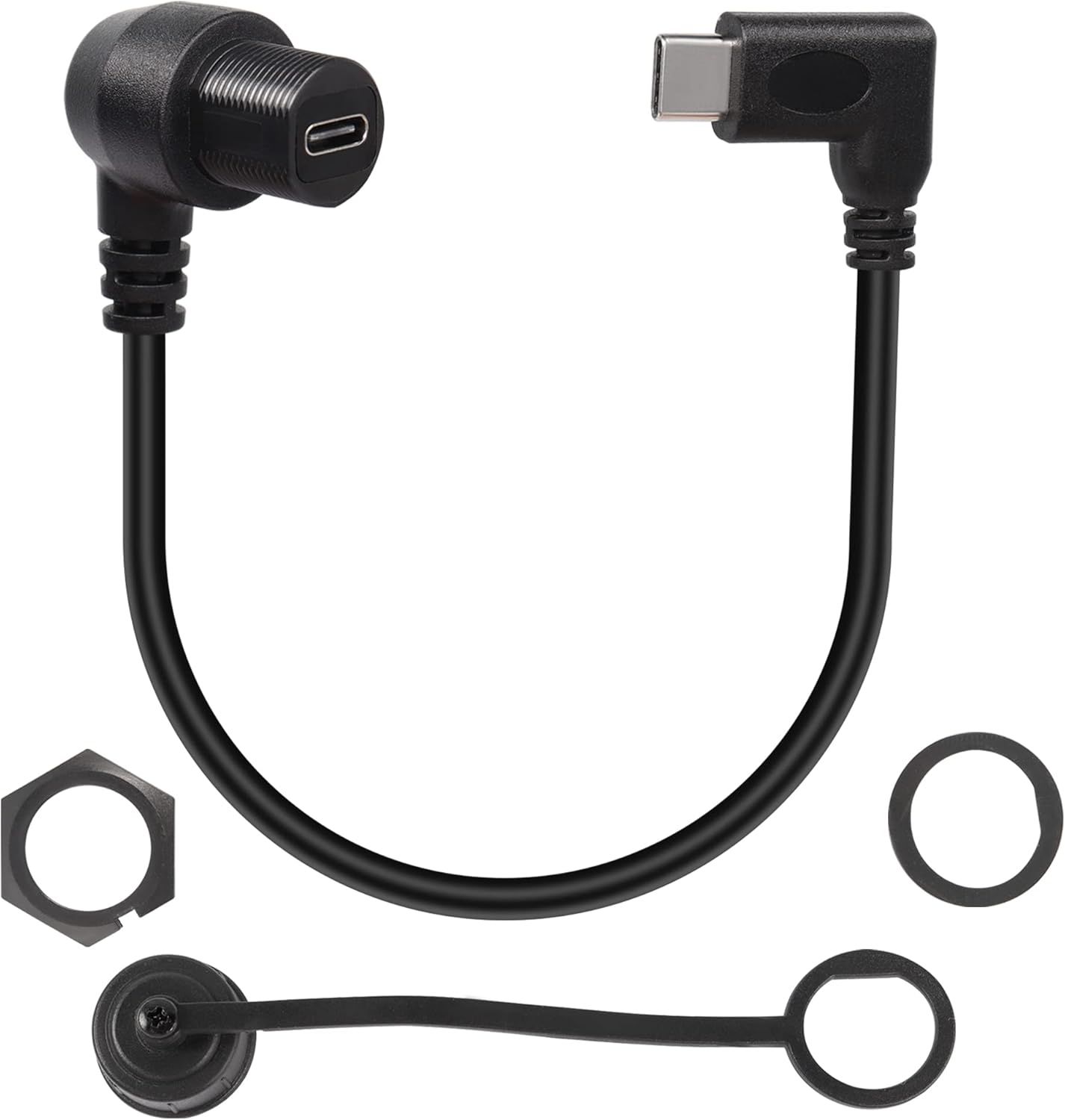 Usb C 3.1 90° Angle Embarqué Imperméable Câble Adaptateur 10Gbps Usb C Mâle À Femelle Droit Angle Panneau Montage Cable,Pour Auto Tableaux Bord Équipement Panneau, 30Cm/11.8In (Cou[HDM5233956]