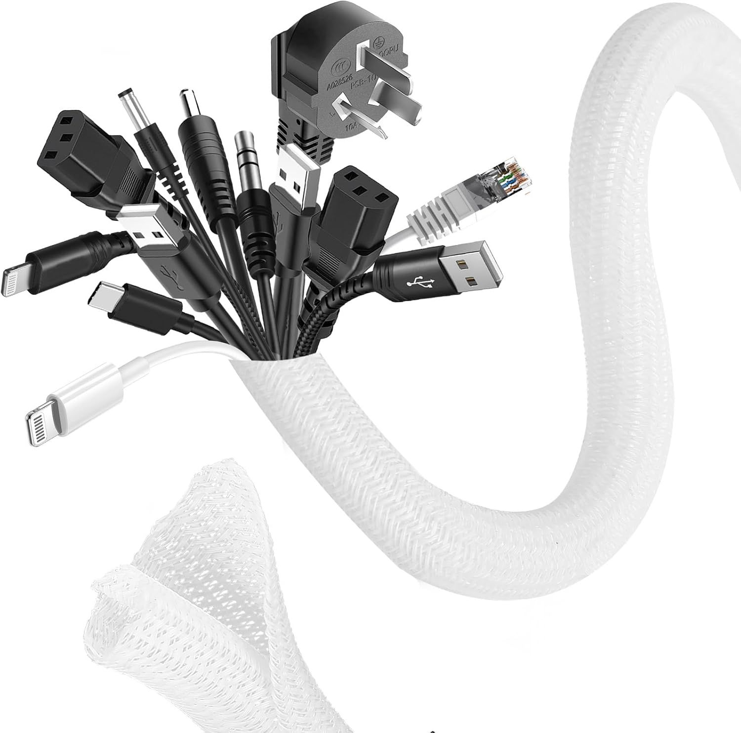 6M Manchon De Cache Câble, 25-32Mm Réglable Gaine Câble Tressée, Extensible Gaine Range Cable Informatique, Protection Du Cache Câbles Pour Automobiles/Tv/Pc/Usb/Audio/Vidéo- Blanc[HDM924350]