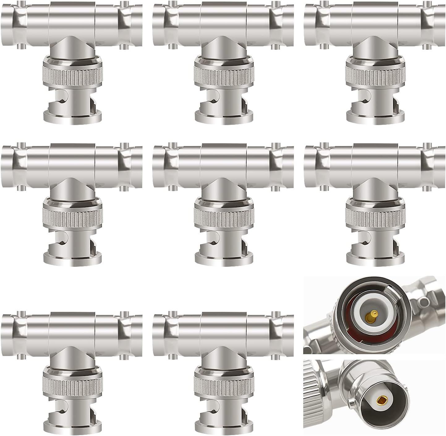 8 Pièces Bnc 3-Voie 1 Mâle À 2 Femelle T Adaptateur, Répartiteur Bnc Type-T Mâle Vers Double Femelle, Pour Cctv, Antenne, Câble Coaxial[HDM5235919]