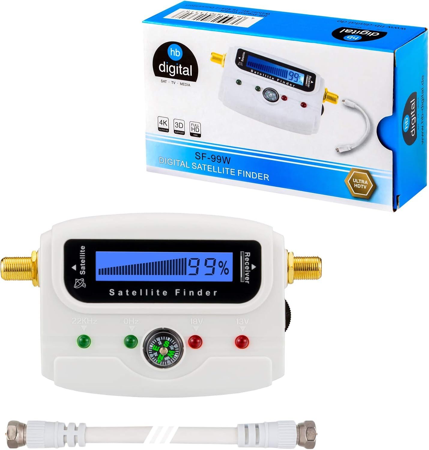 Hb Digital Satfinder Avec Écran Lcd, Boussole Et Son, Câble De Connexion F, Manuel D'Utilisation En Allemand, Connecteurs Plaqués Or, Pour Ajuster Votre Antenne Satellite, Avec Aff[HDM5233104]