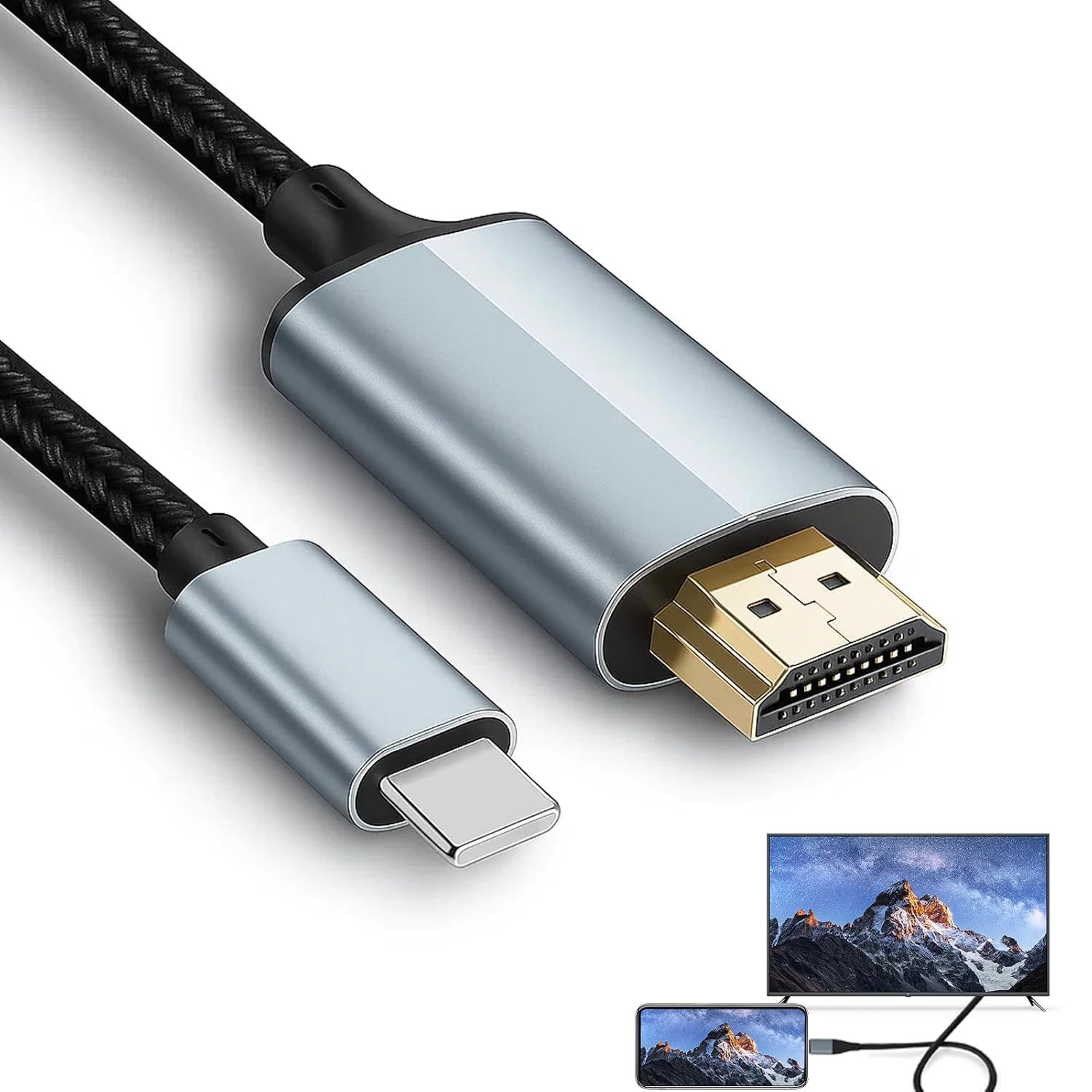 Câble Usb C Vers Hdmi, 4K@60Hz Cable Usb Type-C A Hdmi, Usb 3.1 To Hdmi 2.0 Cordon Hdr, Hdcp2.2, Thunderbolt 3/4 Compatible Pour Macbook Pro/Air, Ipad Pro, Surface, Galaxy S8-S23, [HDM5233158]