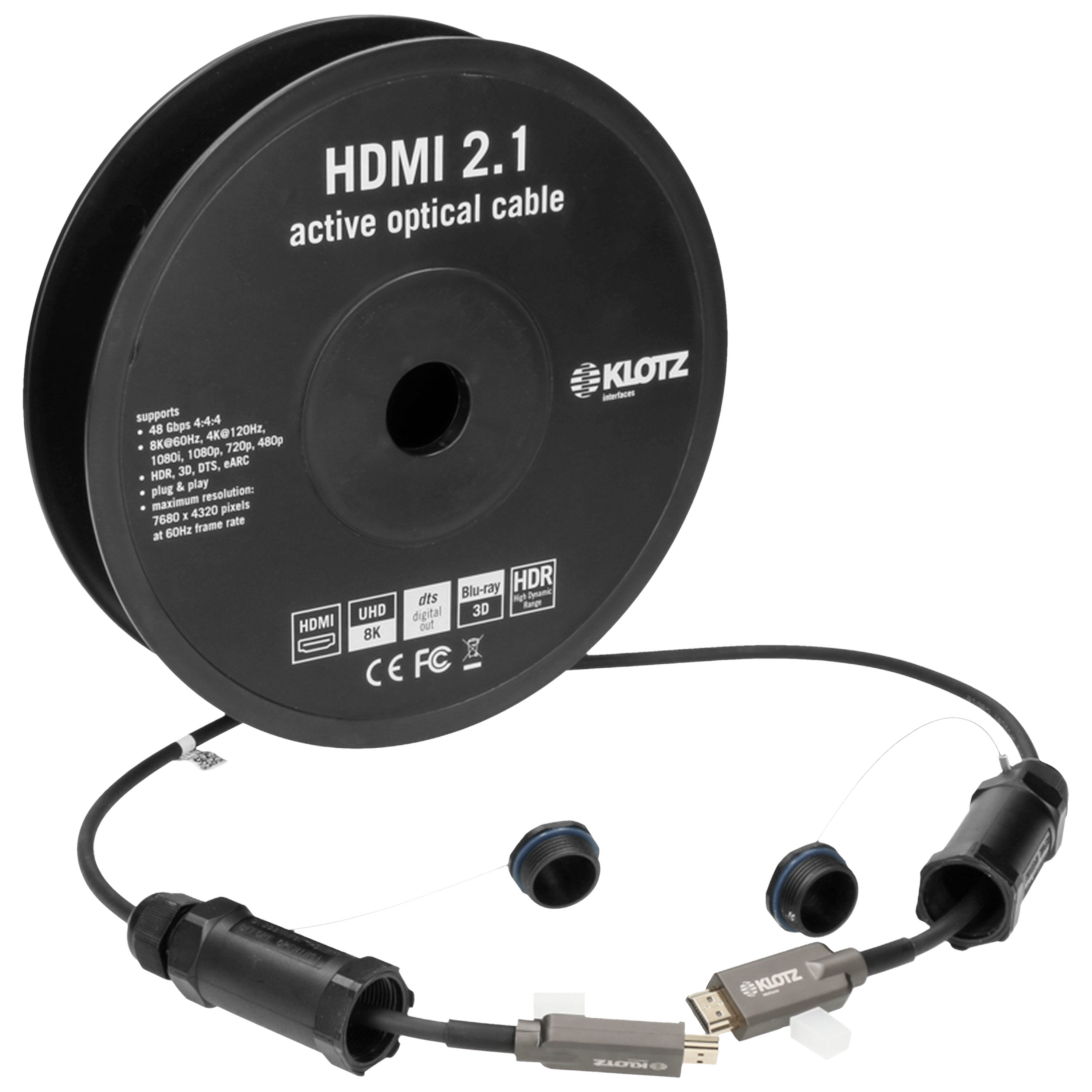 Klotz FOAUHR100 - Câble optique 100m HDMI 2.1 avec capuchons de protection