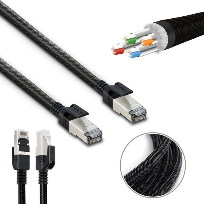 Câble Ethernet Cat 8RJ45 1m 2m 3m 5m 10m 20m 30m Cable RéseauCat8 40Gbps 2000MHz Gigabit S/FTP Nylon Câble Internet Lan