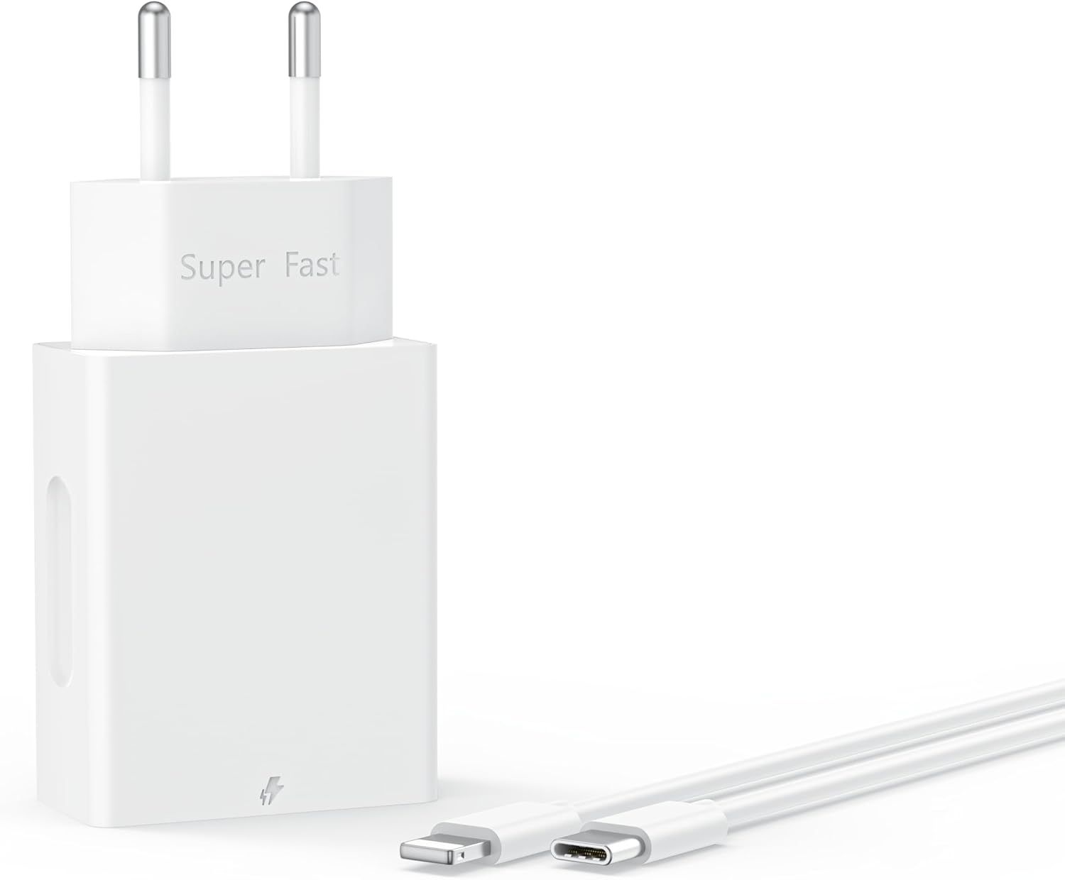 25W Chargeur Rapide pour iPhone, PD 3.0 Prise USB C avec 1M Cable Lightning for iPhone 14/14Pro/13/13 Mini/13 Pro/13Pro Max/12/12Pro/12 Pro Max/11/11 Pro/11 Pro Max/iPad 5/6/7/8/9/Mini 2/3/4/5