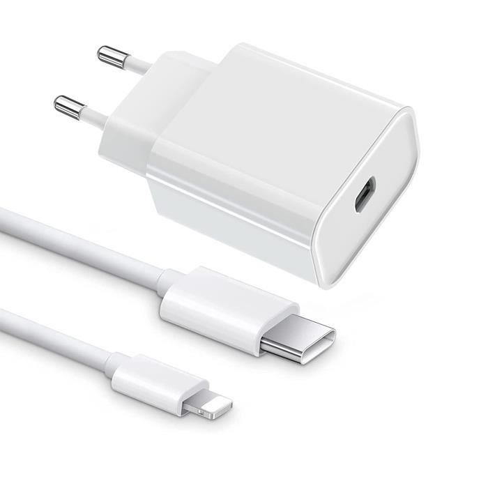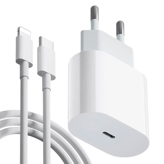 Chargeur PD Rapide 20W + Cable pour iPhone 14-14 PLUS-14 PRO-14 PRO MAX-13-MINI-13 PRO-13 PRO MAX-12-12 PRO-11-X-XS-XR-SE