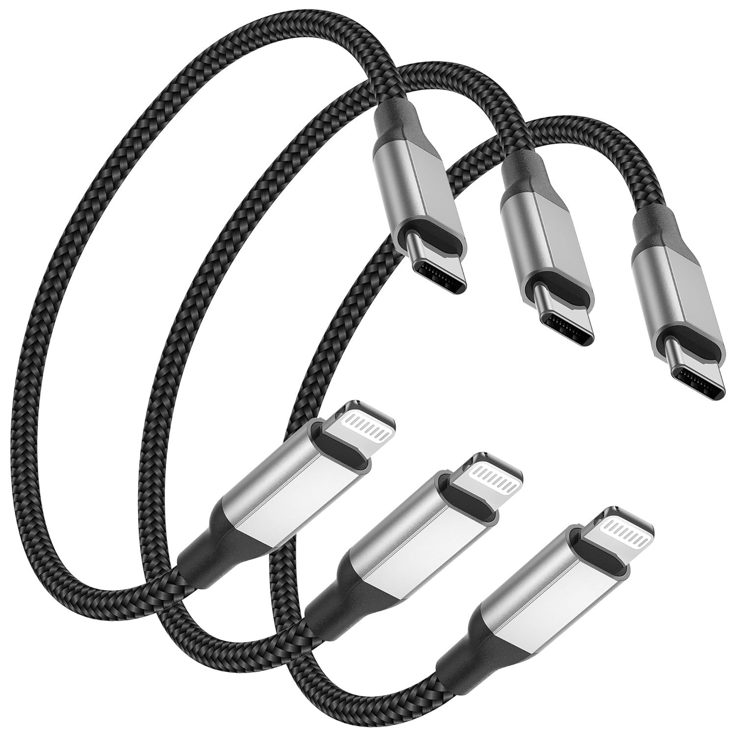 USB C to Lightning Cable 3 Pack Short 30cm MFi Certified Fast Charging Nylon Cable and Data Cable for iPhone 14 13 12 11 Mini Pro Max X XS XR 8 7 6 Plus SE iPad Black