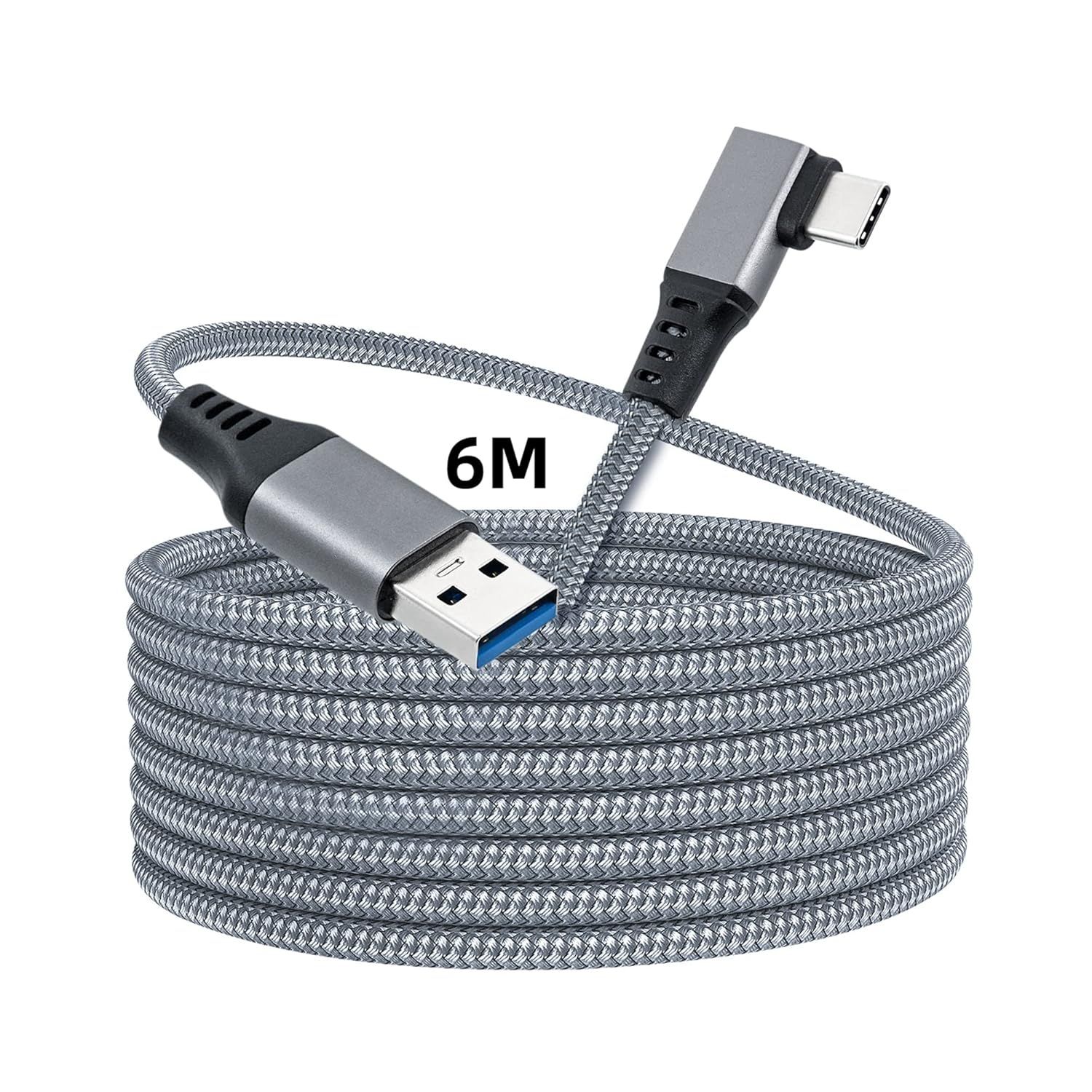 6M Link Cable Type-C vers USB3.0 Câble de Transfert de Données Câble de Charge Rapide Tressé à Angle Droit pour les Appareils à port Quest/Quest 2/Quest 3/Type-C