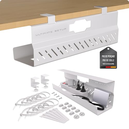 Premium Cache Cable Bureau sans percer - Cable Management Bureau - Range Cable Bureau – Flexible Chemin de Cable - Grande capacité de Charge (Blanc, Lot de 1)
