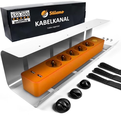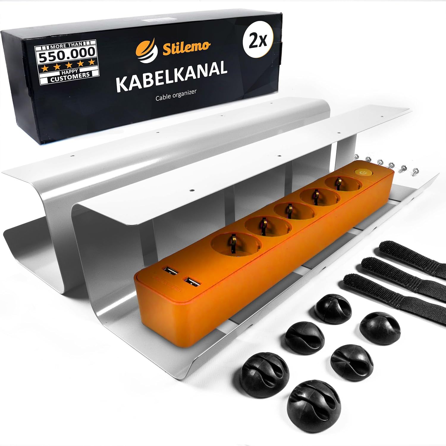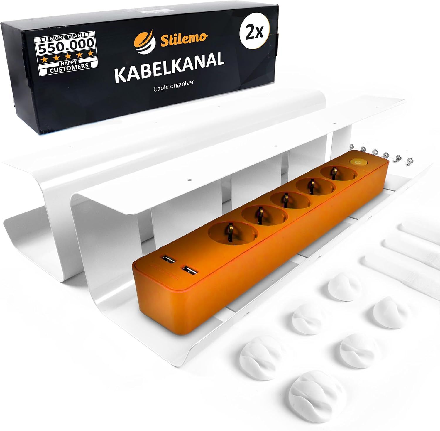 Stilemo Cable Management Bureau Conduit de Câbles – Set Goulotte Passe-Câbles Organisateur de Bureau - Support de Câble – Chemins de Cables - 43x12x10 cm Acier Revêtu Charge de 5kg – 2 Pièces Blanc