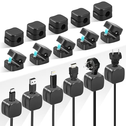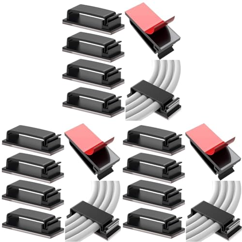 Vinabo 10 Pcs Auto-adhésifs, Management, Support, Gestion Clips Durable, pour TV, PC, Ordinateur Portable, Câble Ethernet, Maison, Bureau, (Noir) (Lot de 3)