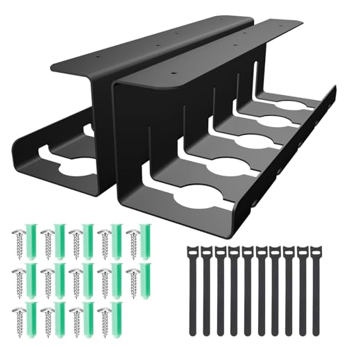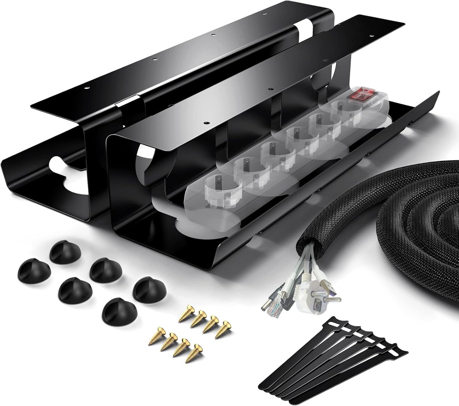 AiQInu Cable Management Bureau Conduit de Câbles 2 Pièces,avec Accessoires, Passe câbles Bureau Support Gestion Management Chemin des câbles Organisateur,Acier Revêtu,Noir