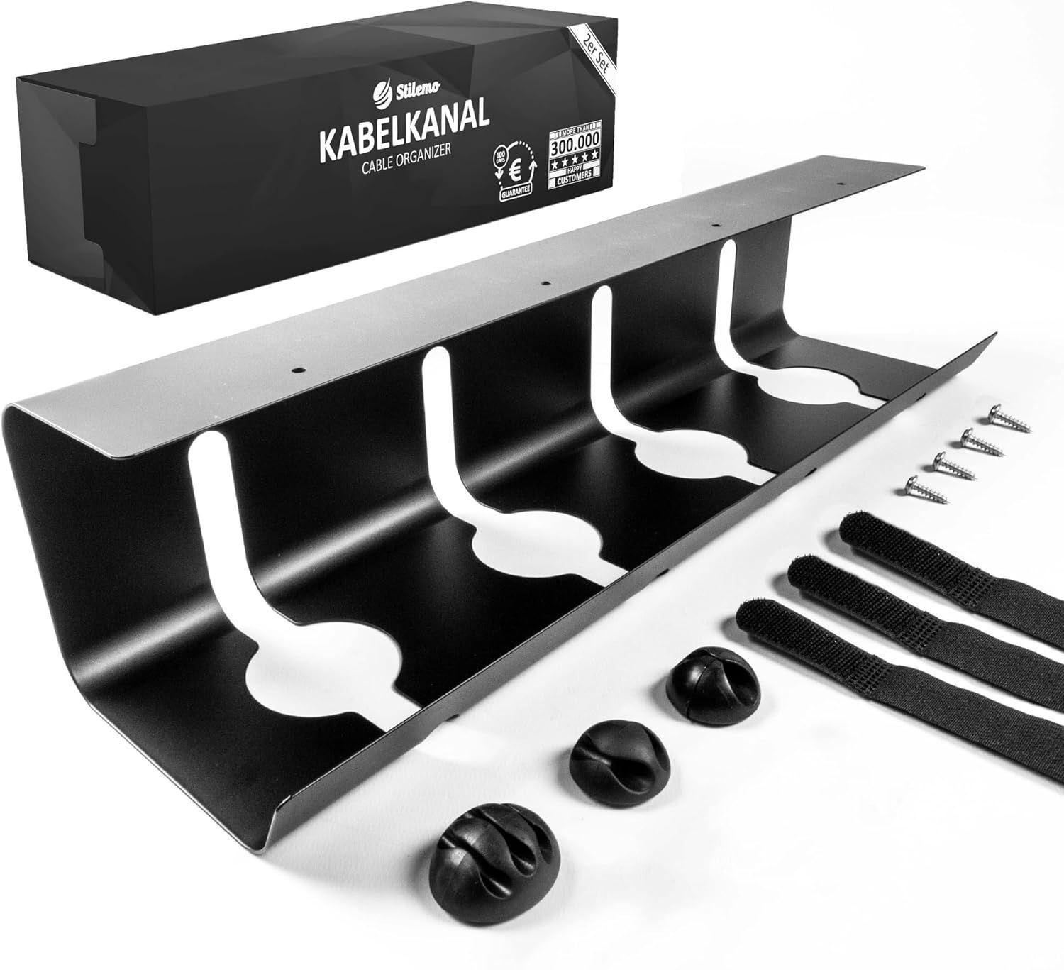 Stilemo Cable Management Bureau Conduit de Câbles – Goulotte Passe-Câbles Organisateur de Bureau - Support de Câble – Chemins de Cables - 43x12x10cm Acier Revêtu Charge Max. de 5kg – 1 Pièce Noir