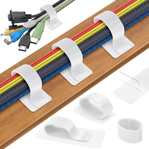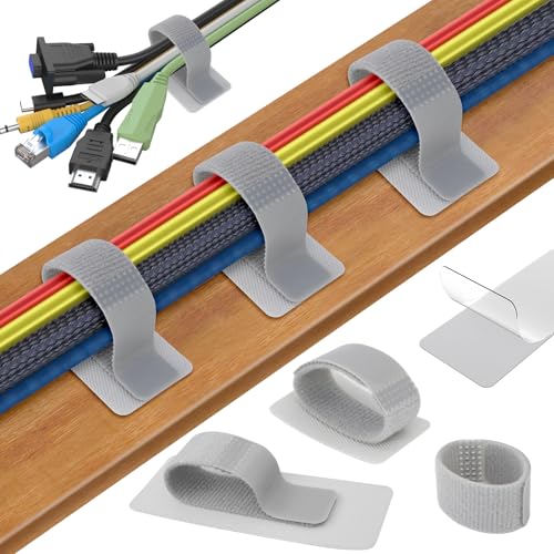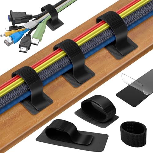 Sangle Attache Cable Adhesif, Attaches de Câbles Auto-Agrippantes, Serre-Câbles sous la Table Réutilisables, Gestion des Câbles sous Le Bureau, Réglable Cable Management Rangement Le Bureau