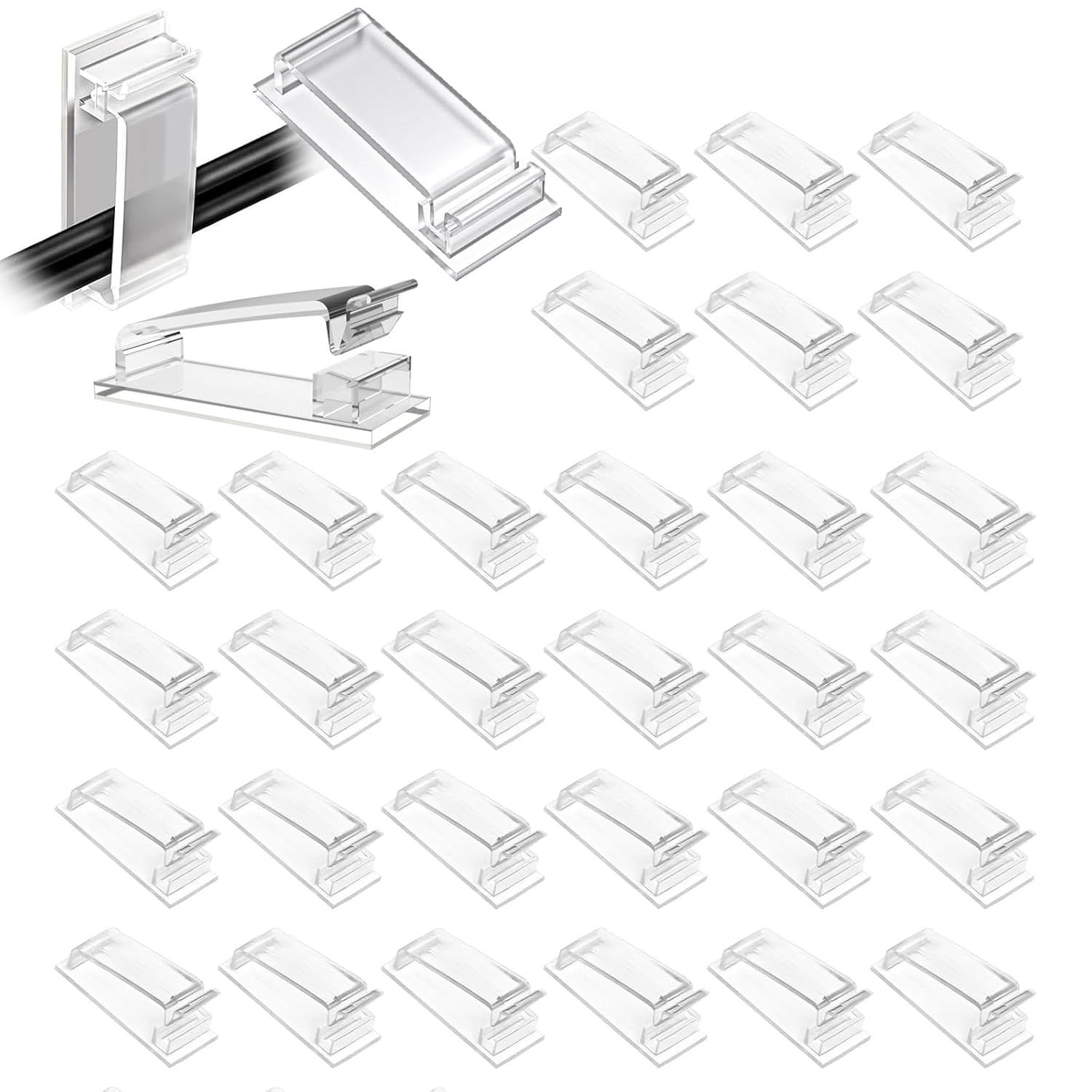 Attache Cable Adhesif,30er Set Clips Cable avec Attache Cable pour Fixation Rapide Cable Management pour Bureau Maison Atelier Attache Cable pour Ordinateur TV Câble Électrique