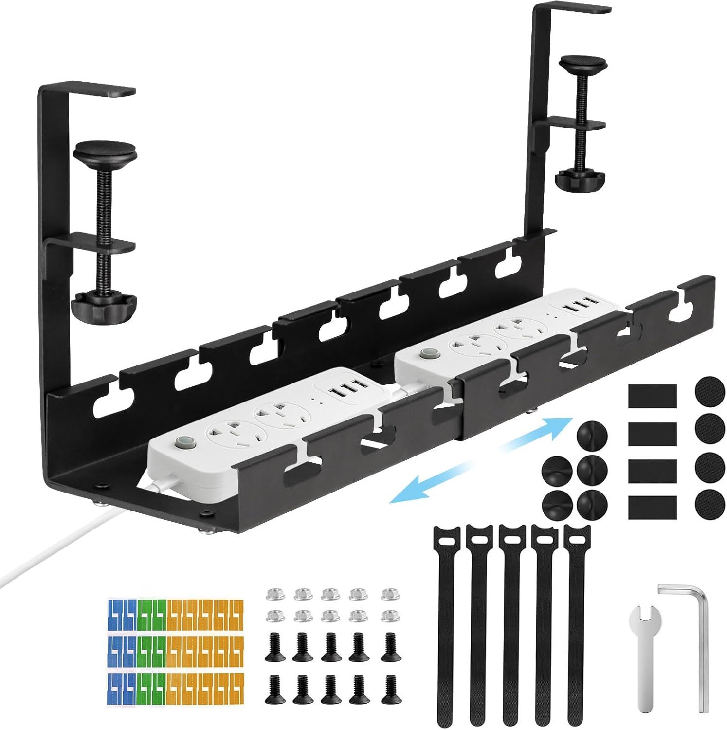 YTACREA Cable Management Bureau sans Perçage, 40-74cm Plateau de Gestion des Câbles sous Le Bureau Rétractable, Range Cable Bureau Organisateur de Cable, Noir